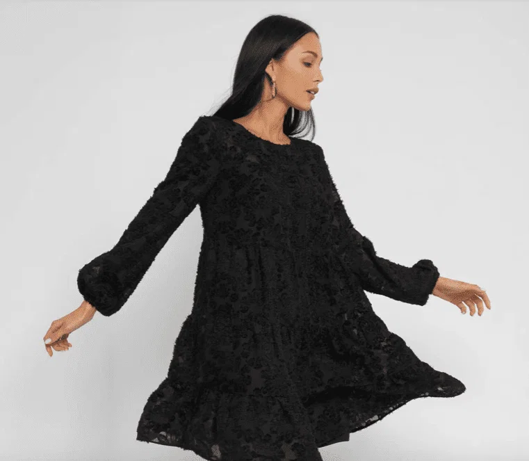 Zwiewna sukienka z długim rękawem w modnym w tym sezonie wzorze.